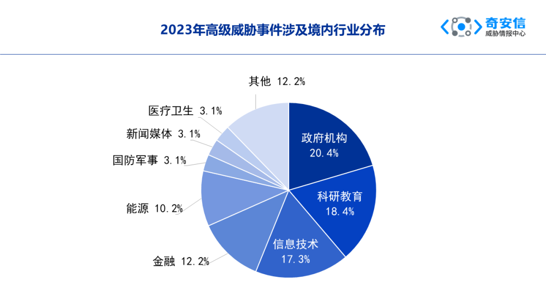 众所周知,金融安全是国家安全的重要组成部分,是经济平稳健康发展的重要基础。金融行业的数字化程度较高,环境非常复杂,网络和数据安全要求更严苛,挑战更加艰巨。根据奇安信威胁情报中心发布的《全球高级持续性威胁(APT)2023年度报告》显示,金融行业是APT攻击事件最为频繁的五大行业之一。