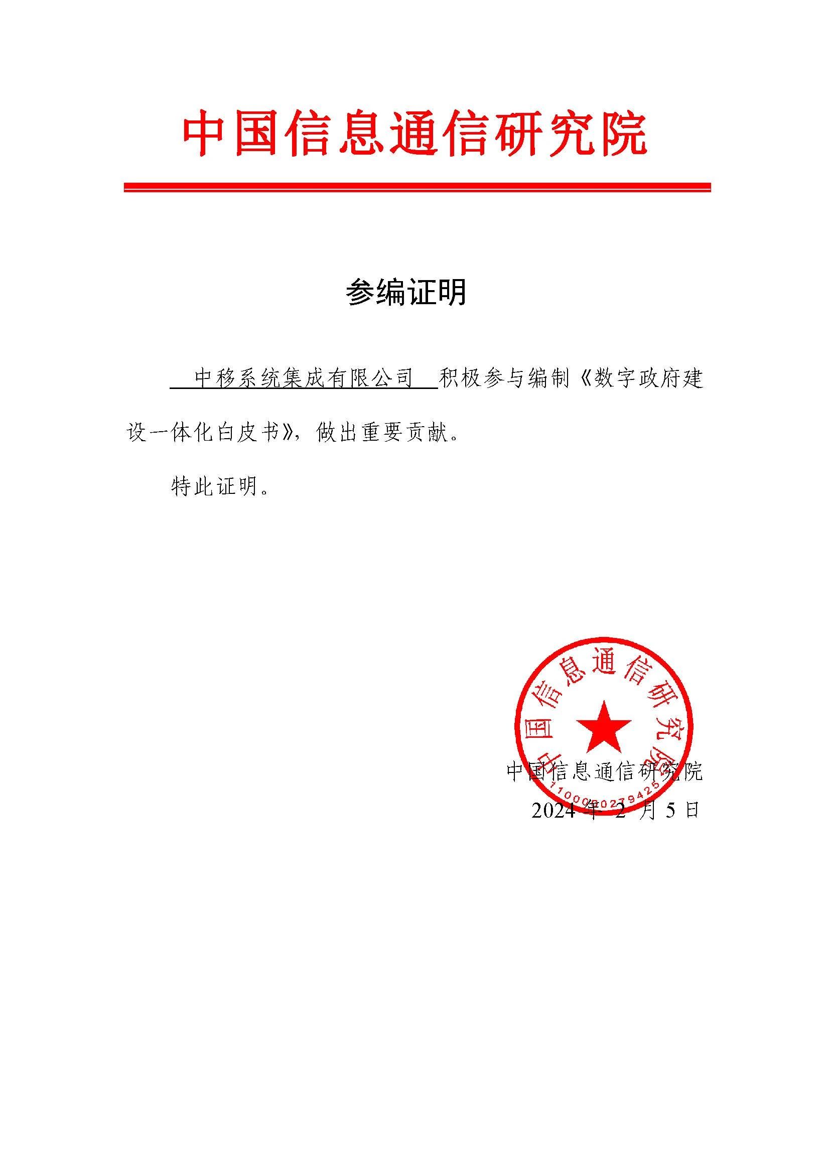 近日,中国信息通信研究院正式发布《数字政府一体化建设白皮书(2024年)》,中移系统集成有限公司(以下简称“中移集成”)参与编制。