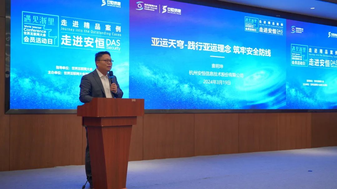 3月19日,世界互联网大会在浙江省杭州市举办“走进精品案例”之“走进安恒”活动。来自浙江省委网信办、杭州市委网信办、浙江省网络空间安全协会、世界互联网大会会员单位的代表参加此次活动,一同深入探索国际体育盛会背后的网络安全保障故事。