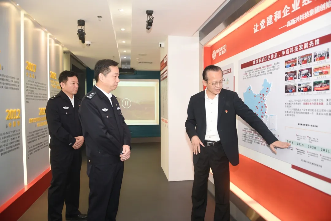 在党建展厅参观交流中,潘慈平书记对高新兴科技集团党建工作给予了高度肯定。他特别关注高新兴党委提炼出的“133”思想工作带动法,表示“133”思想工作带动法既有创新精神又十分规范,民营企业能在全国范围内创下如今成绩实属难得,期待未来双方能在党建工作方面加强交流,相互学习,共同提升。