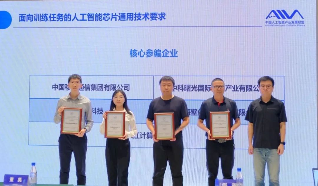 近日,中国人工智能产业发展联盟面向参编单位颁发证书。中科曙光凭借技术优势以及实践经验,全程参编《面向训练任务的人工智能通用技术要求》标准(以下简称“标准”),获颁“核心参编单位”证书。