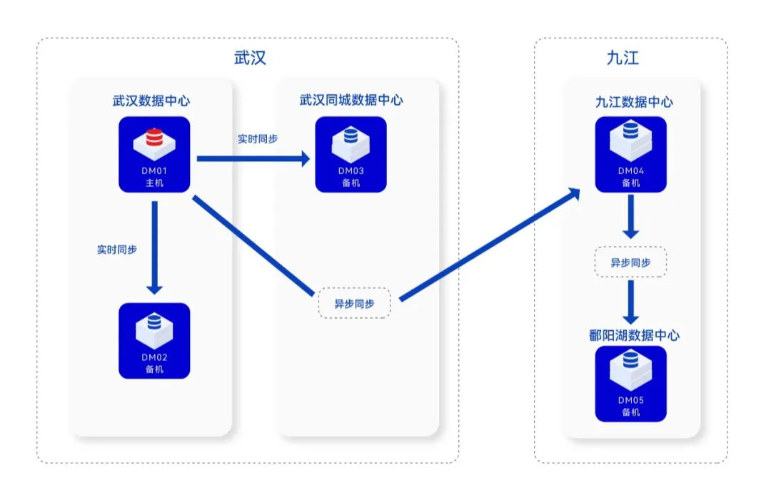 金融行业对数据的可靠性和连续性有着极其严格的要求,任何数据丢失或服务中断都可能导致严重的经济损失。为满足该银行业务系统对数据库高安全、高可用、高可靠及异地灾备等方面的需求,项目采用基于达梦数据库管理系统DM8和达梦数据主备集群软件DM DataWatch的两地三中心解决方案。