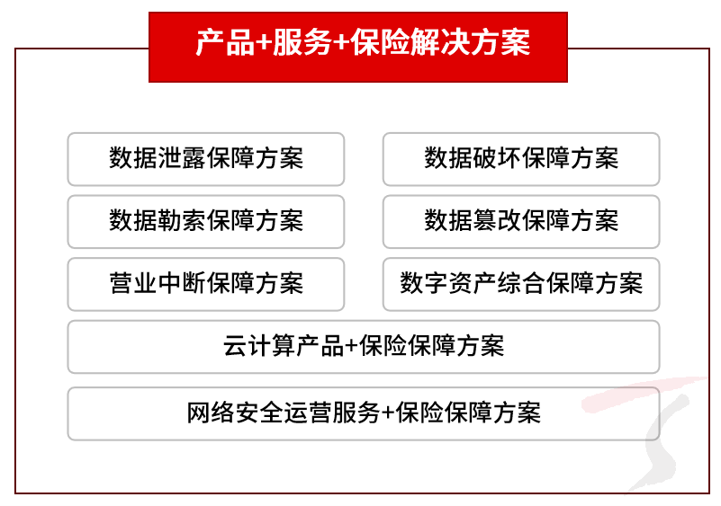 为确保在发生数据勒索事件时能够迅速、准确地进行定责定损赔付,该方案在保前通过人工调查、技术评估等多种方式对企业网络安全进行风险评估,在保中通过附加的技术服务帮助企业实时监控网络安全风险,在保后提供应急响应服务,帮助企业快速解决问题、降低风险影响,将损失降到最低。