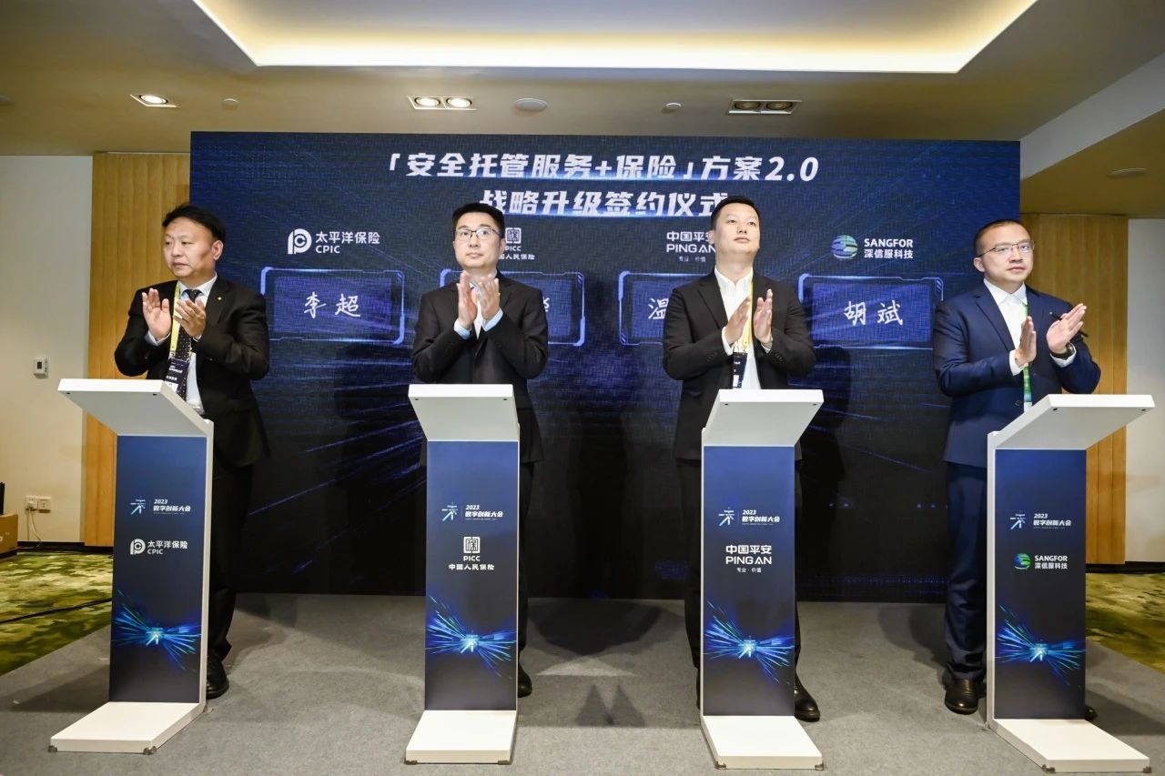 2023年9月,「安全托管服务+保险」2.0方案发布,与三大保险公司现场签约。目前深信服已经承载了近百家保险用户的保前评估、保中监测工作,并协同保险公司设计了更高效的理赔机制和流程,真正补齐了用户网络安全建设预期的“最后一公里”。