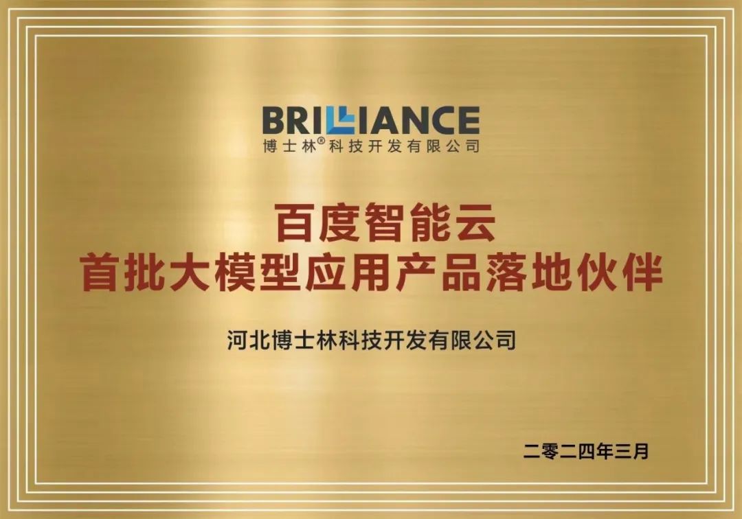 热烈祝贺河北博士林科技开发有限公司成为百度智能云首批大模型应用产品落地伙伴