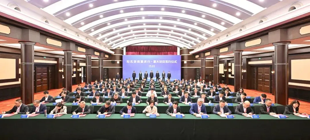恳谈会后,袁家军、胡衡华,南存辉等共同见证知名浙商重庆行重大项目签约。本次签约项目共90个,总金额逾千亿元,重点聚焦智能网联新能源汽车、先进材料、新能源及新型储能、软件信息服务、智能装备及智能制造等领域,将有效助力重庆市加快构建“33618”现代制造业集群体系,推动制造业高质量发展。