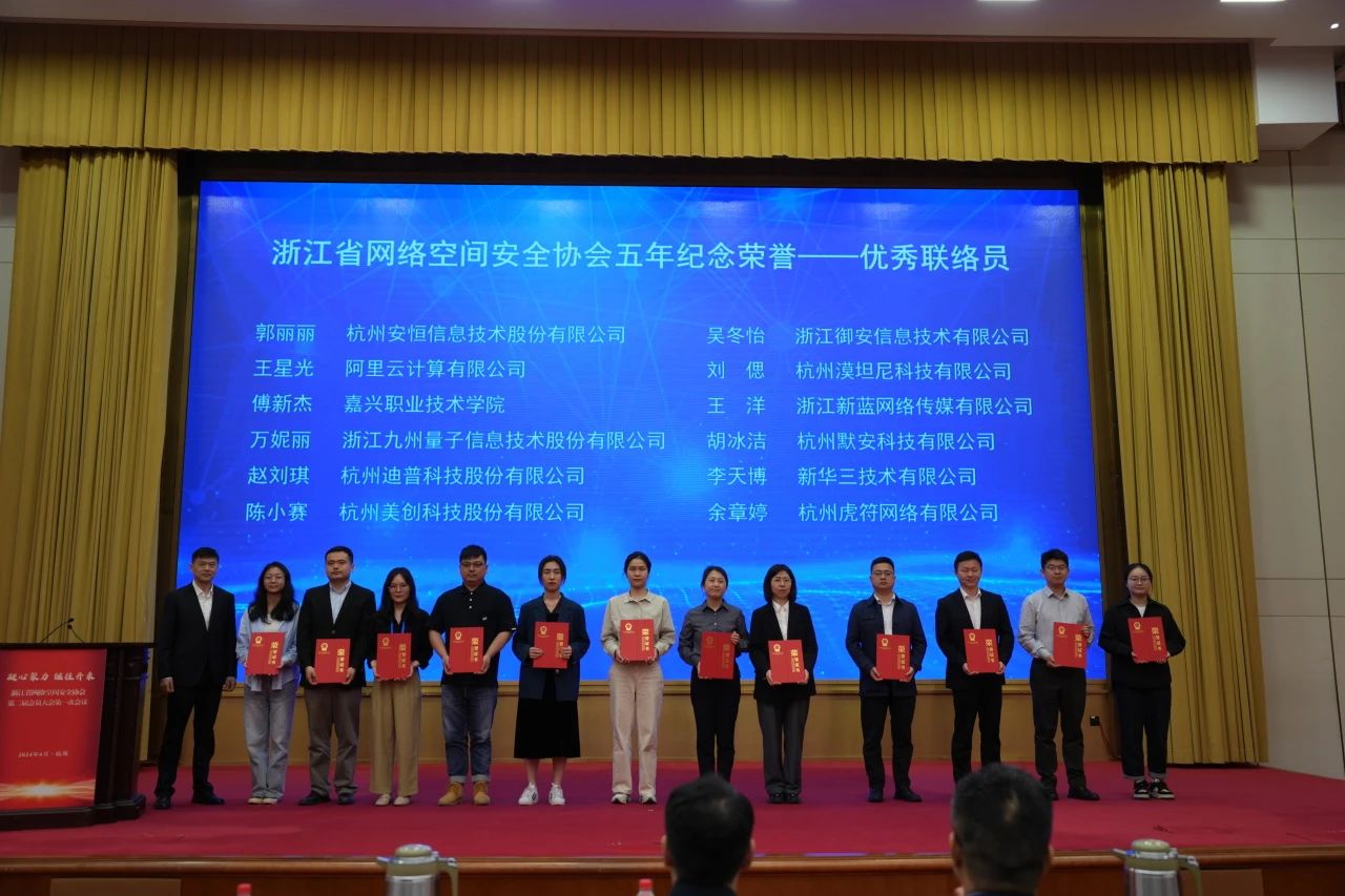此外,安恒信息董事长范渊等人分别荣获五年纪念荣誉——突出贡献者、杰出会员、突出贡献专家、优秀联络员等奖项。