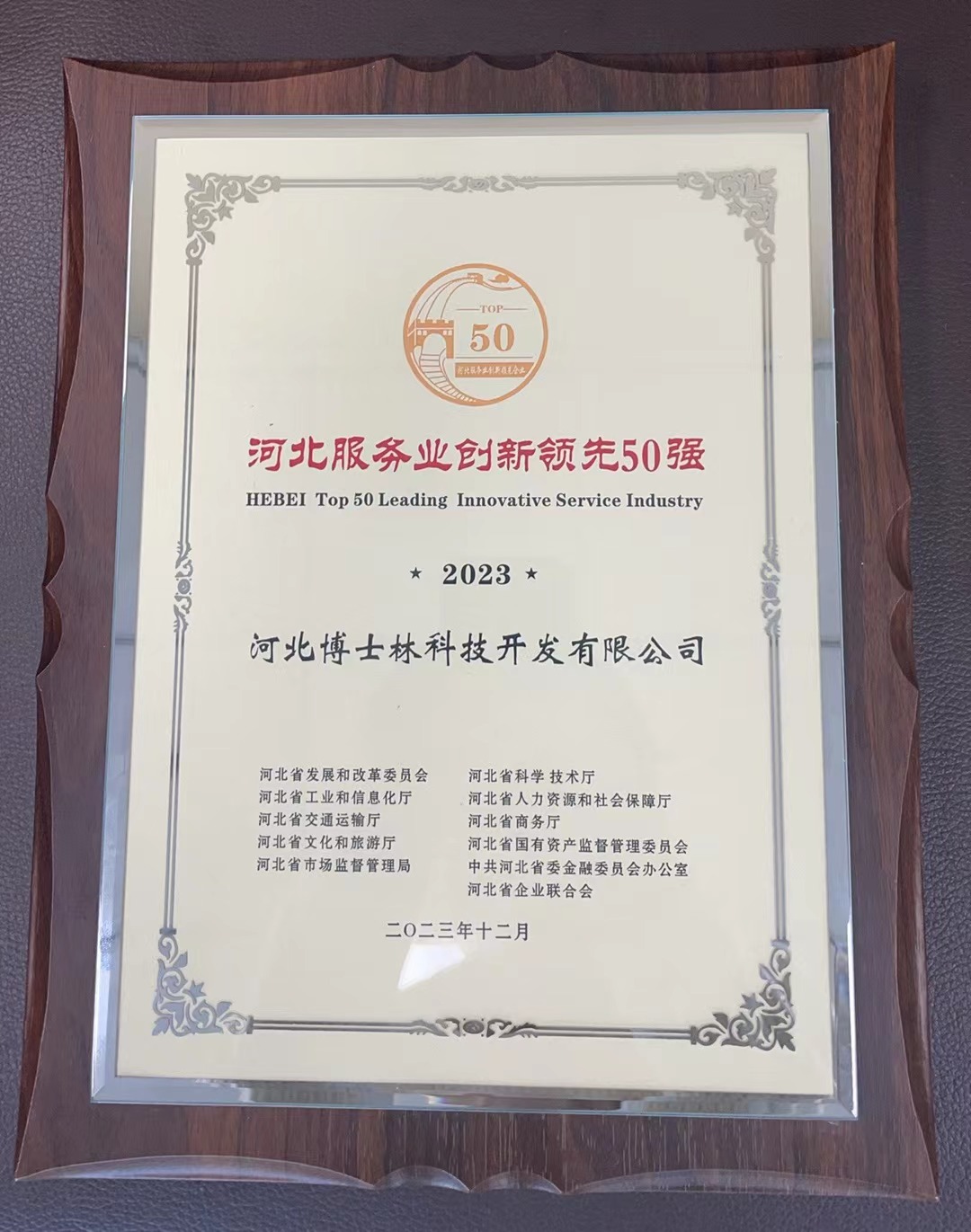4月9日,省发展改革委等11部门联合发布了2023河北服务业企业100强和创新领先50强榜单,博士林科技凭借卓越的技术创新能力和行业影响力,成功入选“2023河北服务业创新领先企业50强”,连续三年获评此荣誉称号。