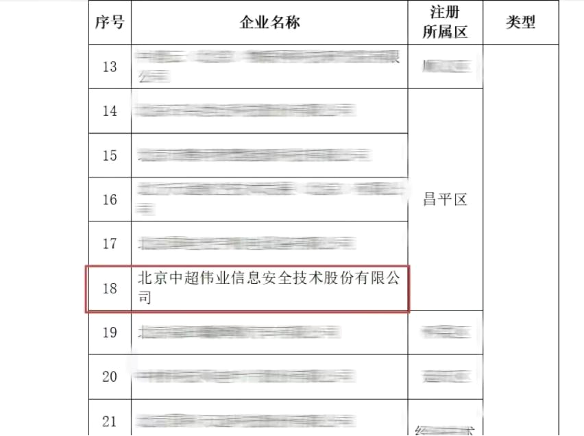 近日,北京市经济和信息化局根据《北京高精尖产业设计中心认定管理办法》要求,经申报、评审、信用审查等环节,公示了2023年度北京高精尖产业设计中心拟认定名单。其中,北京中超伟业信息安全技术股份有限公司(以下简称“中超伟业”,证券代码:873337)获批。