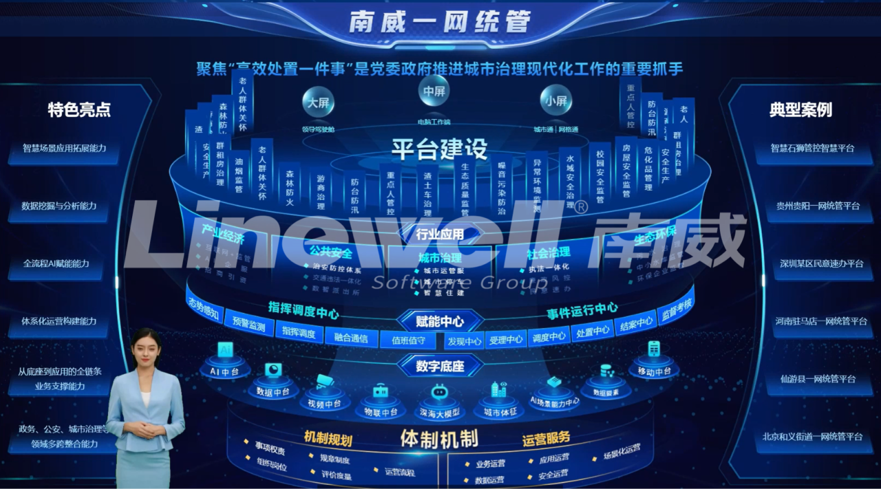 南威一网统管3.0,围绕“高效处置一件事”,以“体制机制+平台建设”双轮驱动为内核,以推动城市治理体系和治理能力现代化为目标,构建“1+1+5+N”的整体解决方案。
