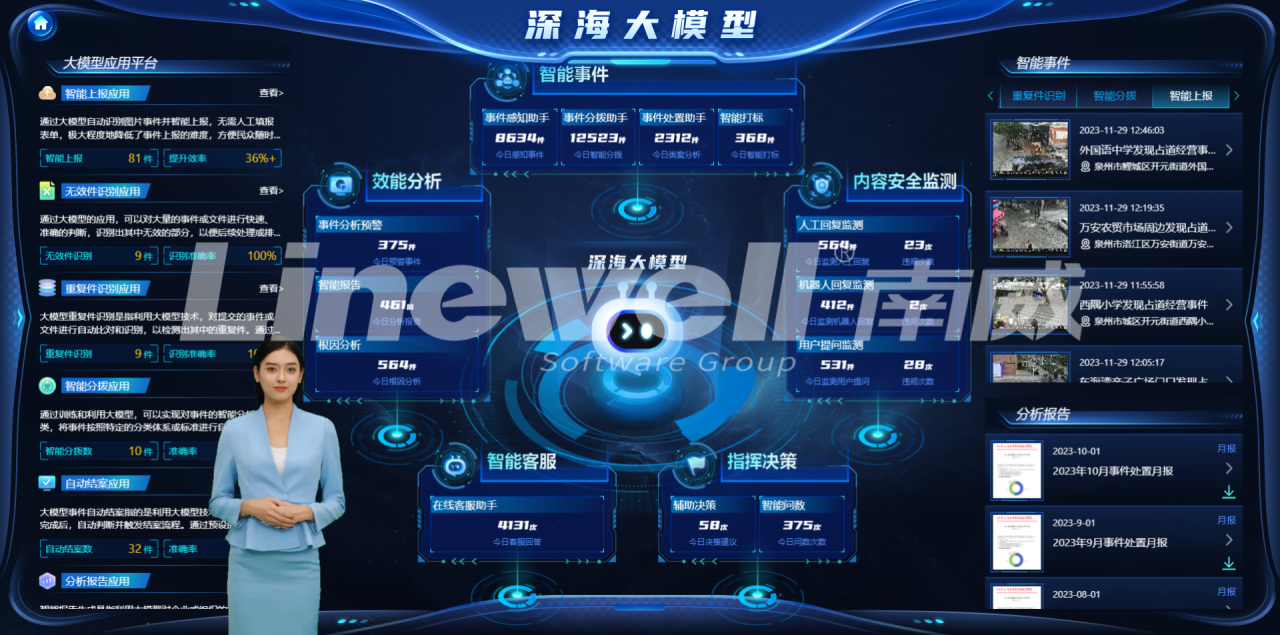 南威“一网统管”以多领域跨界整合及全链条支撑力为基础,通过“AI大模型+数据要素”重塑治理流程、智能分析数据、拓展智慧场景、构建运营体系,从而实现实战中管用、基层干部爱用、群众感到受用。