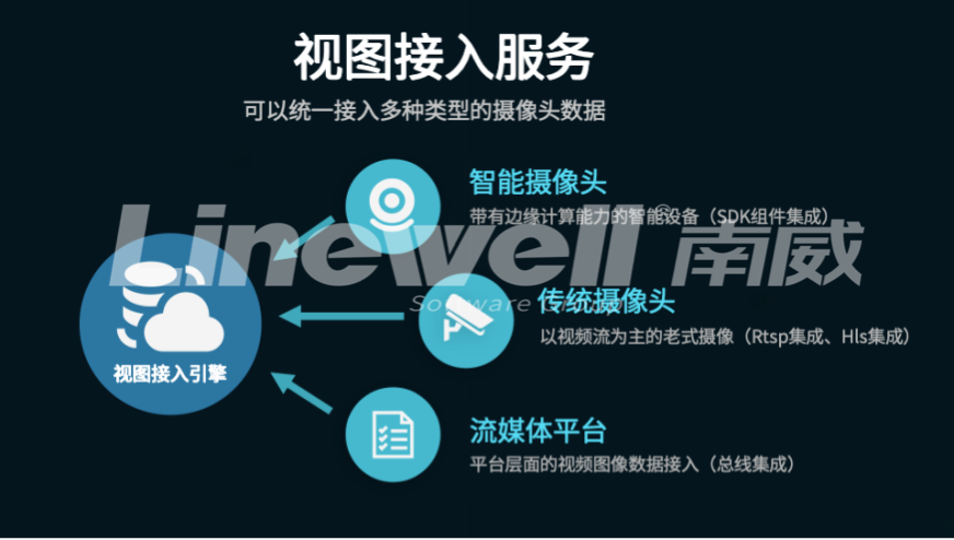南威视频智能解析平台基于国家视频流、图片流统一标准,结合主流硬件厂商的接入SDK方法,研发了感知设备数据视图接入引擎,可支持主流设备厂商的多类型感知设备采集视图数据的统一接入,以此解决多厂多型难以统一接入的难题。