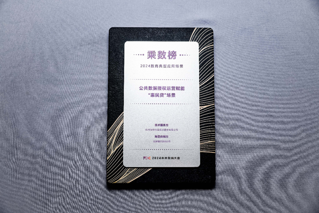 此外,大会首次发布了2024数商典型应用场景“乘数榜”,安恒信息携手交通银行深圳分行打造的“公共数据授权运营赋能‘惠民贷’场景”荣誉入选。此前,安恒信息助力福田区于2023年11月搭建上线了深圳首个公共数据授权运营平台,联合深圳数据交易所首批上架的福田金融1号充分体现了公共数据在金融领域创造的潜在强大经济动能。