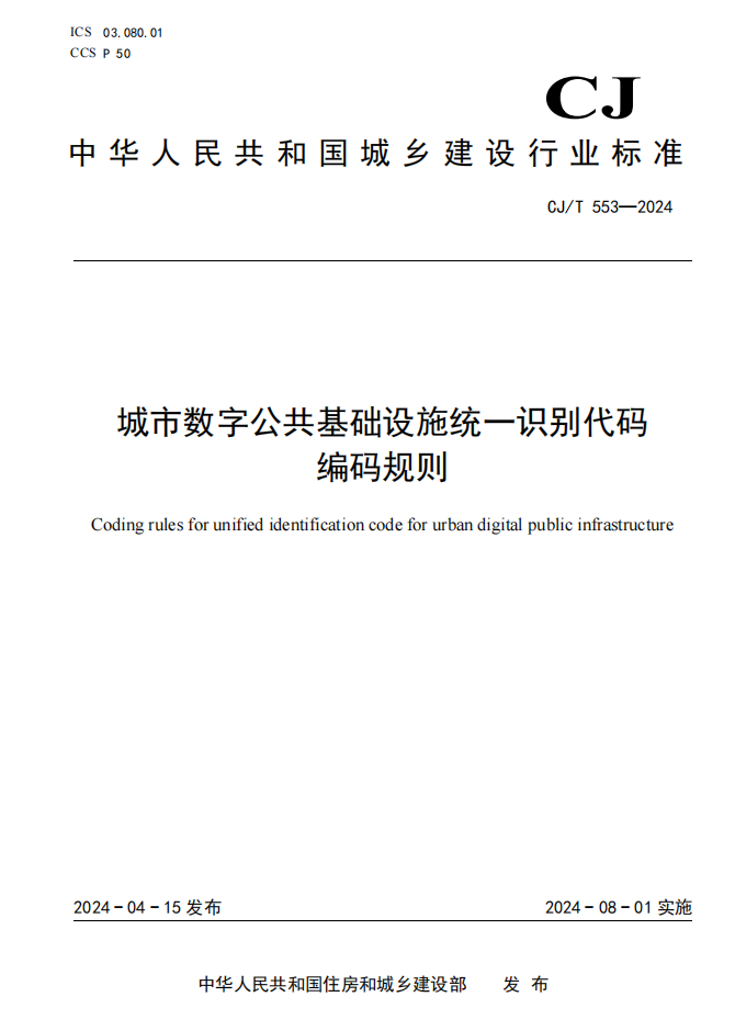 近日,吉奥时空参与编制的《城市数字公共基础设施统一识别代码编码规则》,获住建部批准为城乡建设行业产品标准,并将于今年8月1日起实施。这是全国首个明确城市所有实体对象编码规则和分类框架的国家行业标准,是城市数字公共基础设施建设的基础性标准。