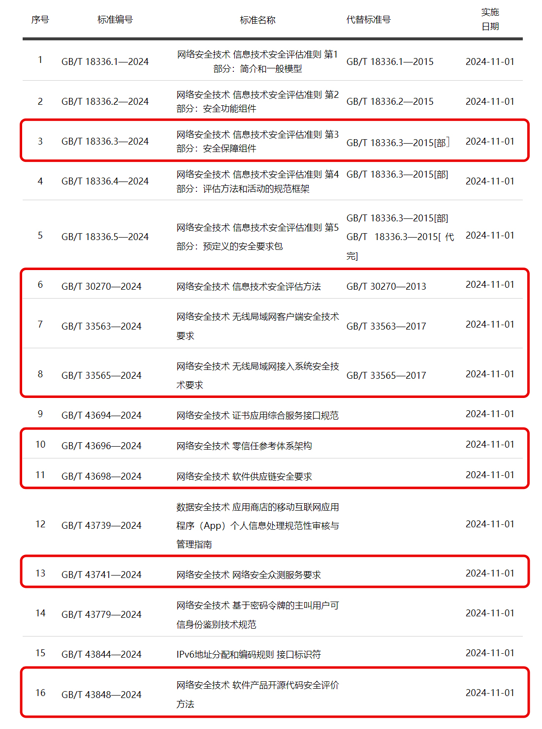 近日,国家市场监督管理总局、国家标准化管理委员会发布中华人民共和国国家标准公告(2024年第6号),全国网络安全标准化技术委员会归口的16项国家标准正式发布,并将于2024年11月1日正式实施。天融信共参与其中8项标准的研制,是网络安全行业中参与数量最多的企业。