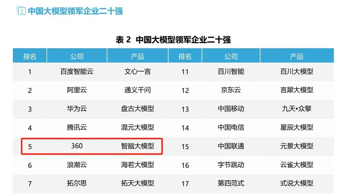 近日,赛迪顾问发布《中国大模型发展研究报告(2024)》,并从五大维度出发评选出中国大模型领军企业。360集团凭借自研千亿通用大模型“360智脑”及多场景落地应用,同百度、阿里、华为等一并入选成为国内大模型头部厂商前五强。