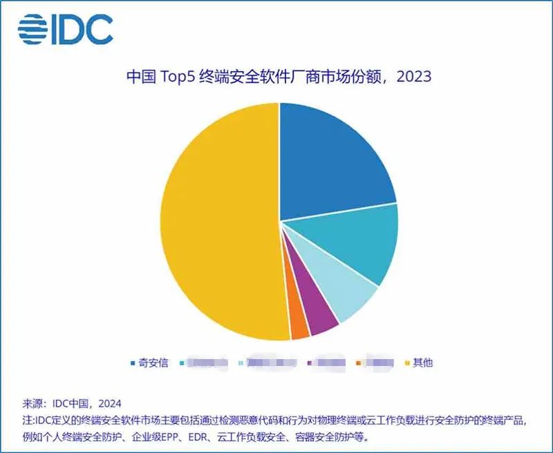 5月13日,全球领先的IT市场研究和咨询公司IDC发布了《中国IT安全软件市场跟踪报告,2023H2》(简称《报告》)。《报告》统计显示,奇安信凭借卓越的技术实力和优秀的市场表现,再次领跑终端安全、数据安全、安全分析与情报市场。特别是终端安全领域,在奇安信连续六年稳居市场第一的基础上,再次扩大市场占有率,彰显了强劲的产品竞争力和市场地位。