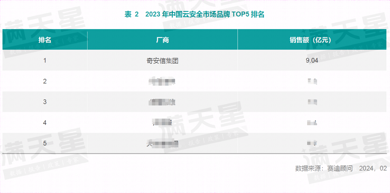 近日,赛迪顾问发布《2023-2024年中国云安全市场研究年度报告》(以下简称:报告),报告指出中国云安全市场规模达到184.2亿元,同比增长21.3%。奇安信作为中国云安全市场的领导者,凭借卓越的产品能力、深厚的市场积淀以及完整的云及云原生安全体系,以9.04亿元的营业收入高居榜首,连续6年夺冠,稳坐中国云安全市场头把交椅。