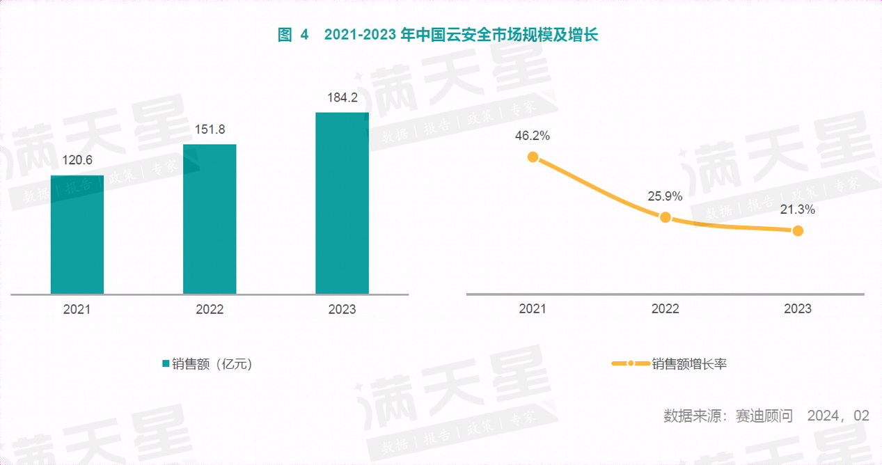 报告指出,2023年全球云安全市场规模达到193.5亿美元,同比增长28.5%,增速较上一年有所回升,其中北美地区依旧是全球云安全占比最大的区域市场。相比国外市场,中国云安全市场在数字中国、数字政府建设等相关利好因素驱动下,同样具备较大发展空间。
