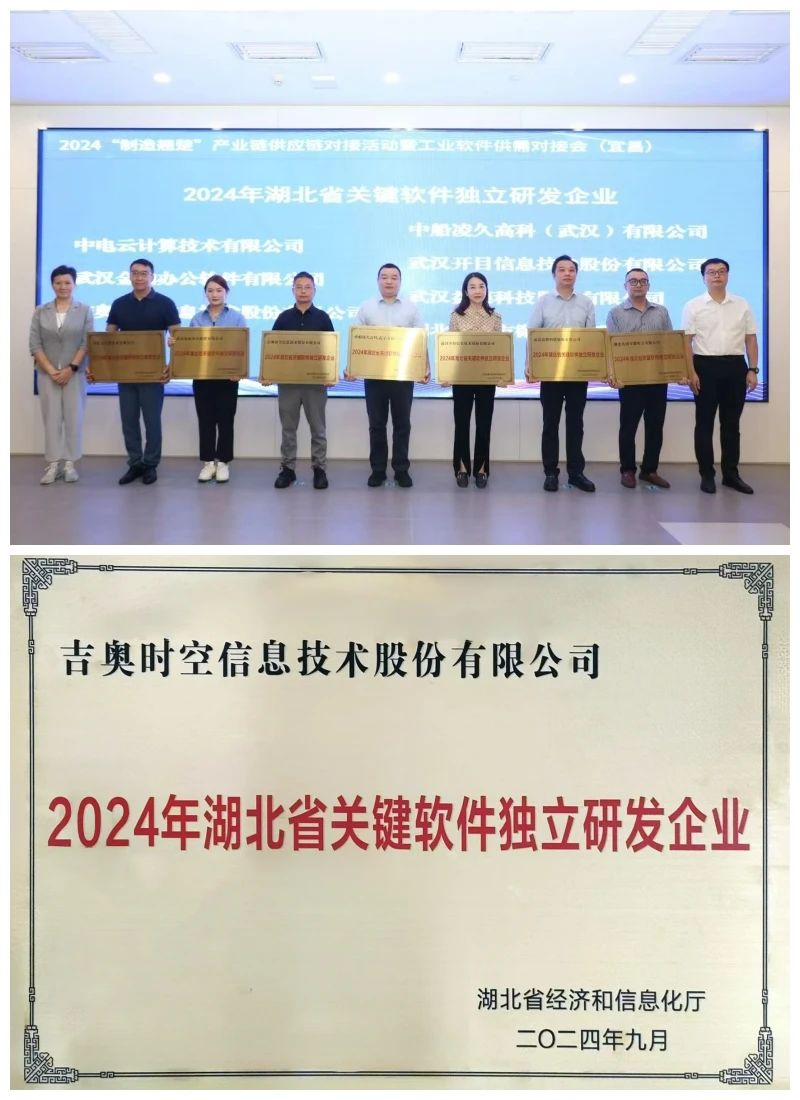 会议期间,省经信厅解读了《湖北省工业软件产业高质量发展行动方案(2024年-2026年)》及其配套文件,并为2024年湖北省首版次软件产品暨关键软件独立研发企业进行授牌。吉奥时空携自主研发的地理信息服务平台GeoGlobe V8,入选“2024年湖北省关键软件独立研发企业”。