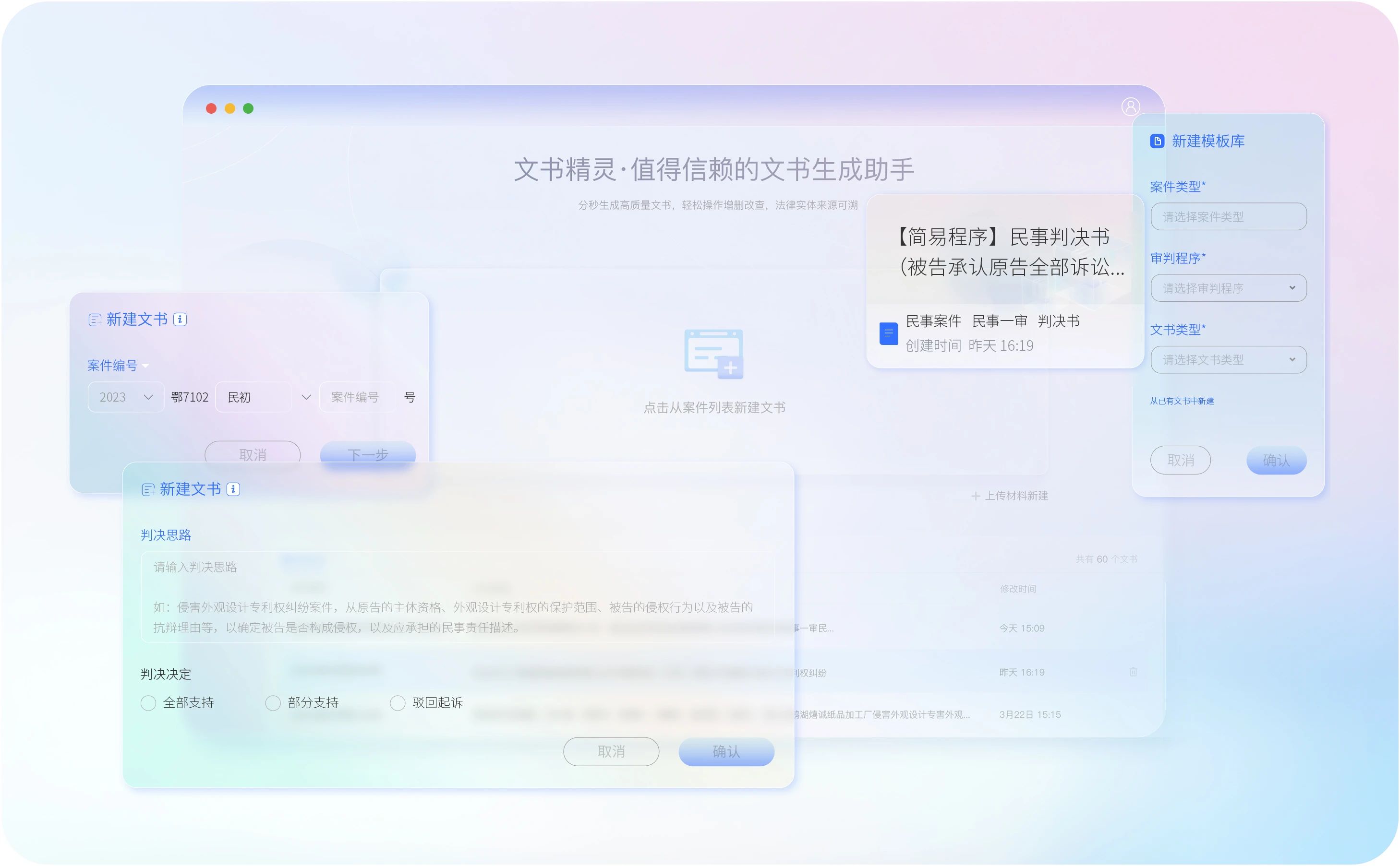 想象一下,面对堆积如山的案件材料,是否会感到力不从心?“文书精灵”就是那位超级英雄,它用智能科技的力量,帮助一键生成专业的法律文书。无论是起诉状、答辩状还是判决书,它都能轻松搞定,让文书工作变得更加高效、轻松。