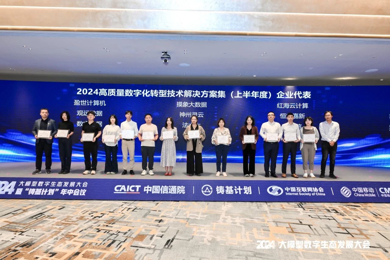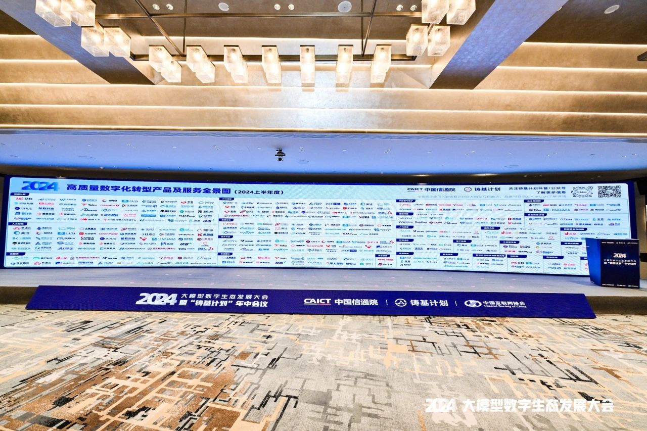 近日,“2024大模型数字生态发展大会暨‘铸基计划’年中会议”在北京隆重召开。大会全面研判未来数字化转型发展趋势和大模型数字化场景应用,中国信通院发布了2024年《高质量数字化转型产品及服务全景图》、《高质量数字化转型技术解决方案》等多项工作成果。