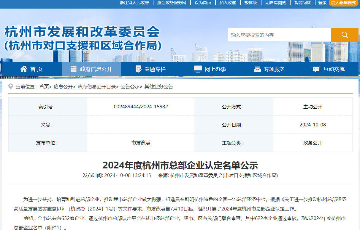 自2023年启动年度总部企业认定工作以来,杭州市在推动总部企业做大做强,打造具有鲜明杭州特色的全国一流总部经济中心上持续发力。今年,杭州市迭代升级了总部经济政策2.0版,优化了总部企业认定标准和程序,同时推出了包括企业荣誉、财政奖补、用地支持等一系列配套的政策支持和保障措施,根据《关于进一步推动杭州总部经济高质量发展的实施意见》等文件要求,组织开展了2024年度杭州市总部企业认定工作。