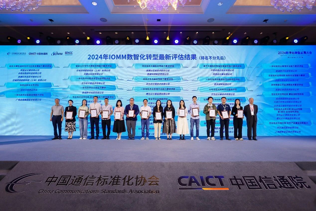 近日,由中国通信标准化协会主办、中国信息通信研究院(简称“中国信通院”)承办的“2024数字化转型发展大会”在北京召开。大会公布最新一批IOMM数智化转型评估结果,发布政企数智化转型领域最新研究成果。太极股份北京市市级政务云平台(太极云)顺利通过“信息技术应用创新 政务云运营能力评估”。