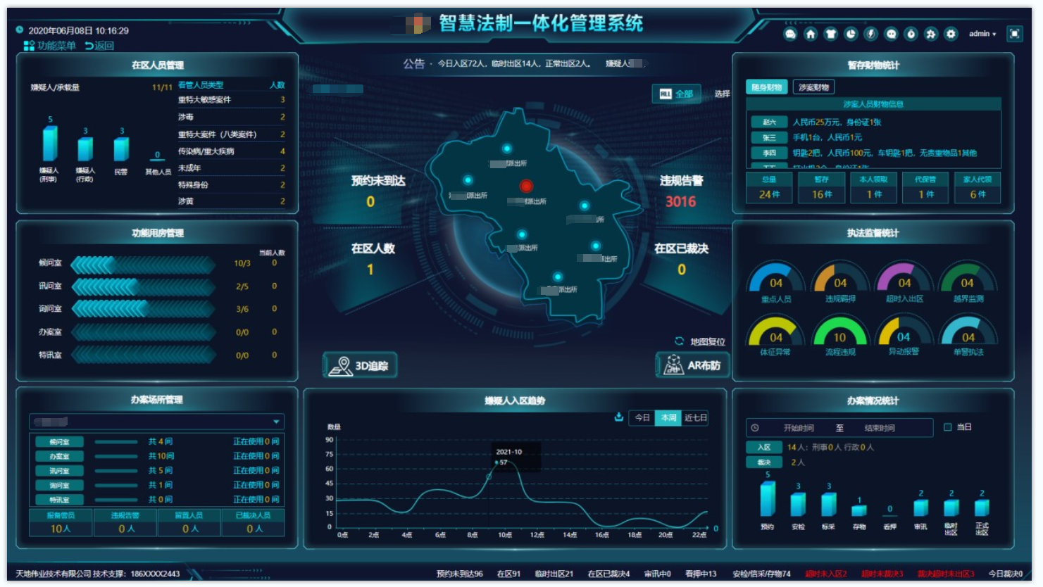 将执法办案区、未成年人一站式办案、涉案财物区、案卷管理区、合成作战指挥、执法监督等各类功能通过综合信息化平台智慧联接,实现从执法办案到执法监督的一站式管理。采用智能AI终端、大数据分析、视频分析、语音识别等多种先进技术,全面辅助公安机关执法规范化工作提质增效,助力打造执法办案管理中心“标杆样板”。