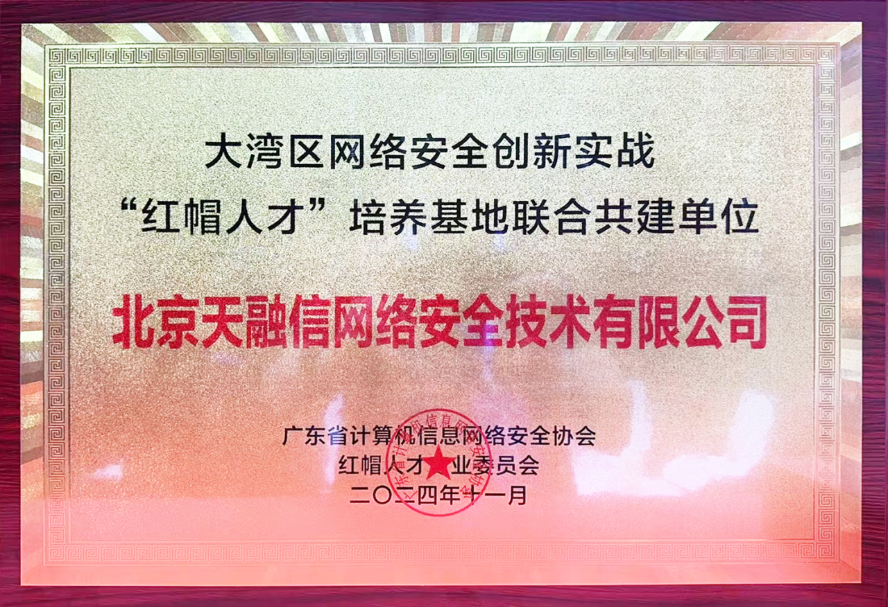 随着5G、人工智能、大数据等新技术快速发展,网络安全边界在不断拓展,人才需求日益增长。作为2024大湾区网络安全大会分论坛之一,2024红帽人才培养专业委员会年会暨红帽高质量人才培养论坛呼吁各界共同推动网络安全人才的高质量发展,并举行了大湾区网络安全创新实战“红帽人才”培养基地联合共建单位授牌仪式,天融信荣获首批“大湾区网络安全创新实战‘红帽人才’培养基地联合共建单位”。