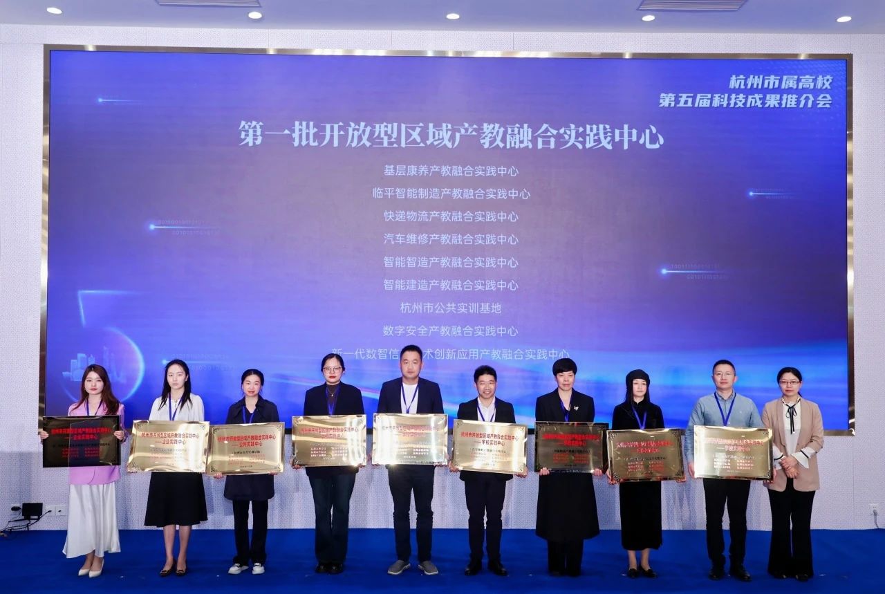 会上公布了第一批开放型区域产教融合实践中心名单。杭州市发改委、杭州市经信局、杭州市教育局、杭州市人力社保局、杭州市国资委等市级部门共同为联合体、共同体和实践中心授牌。