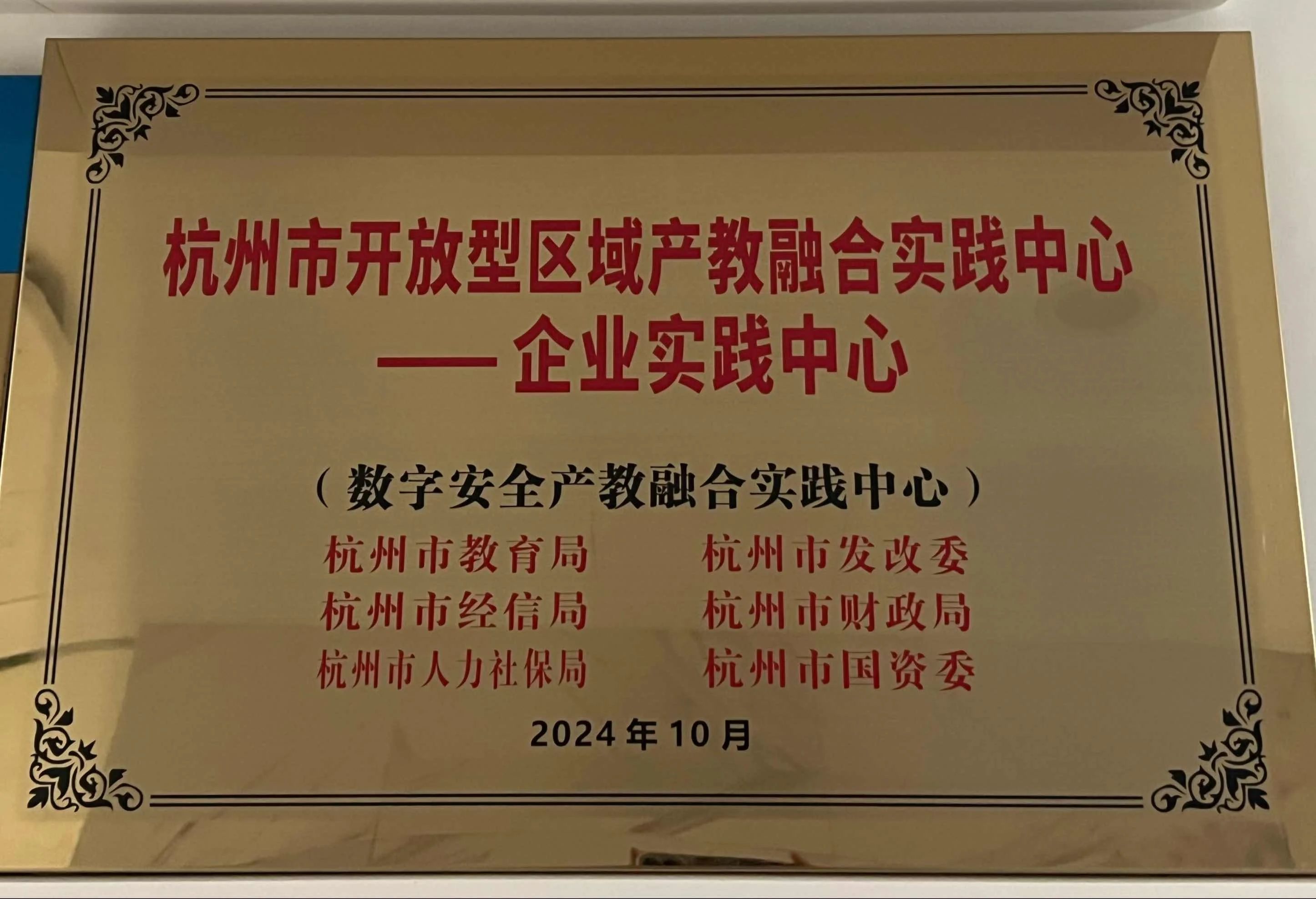 安恒信息荣誉入选“杭州市开放型区域产教融合实践中心——企业实践中心(数字安全产教融合实践中心)”。