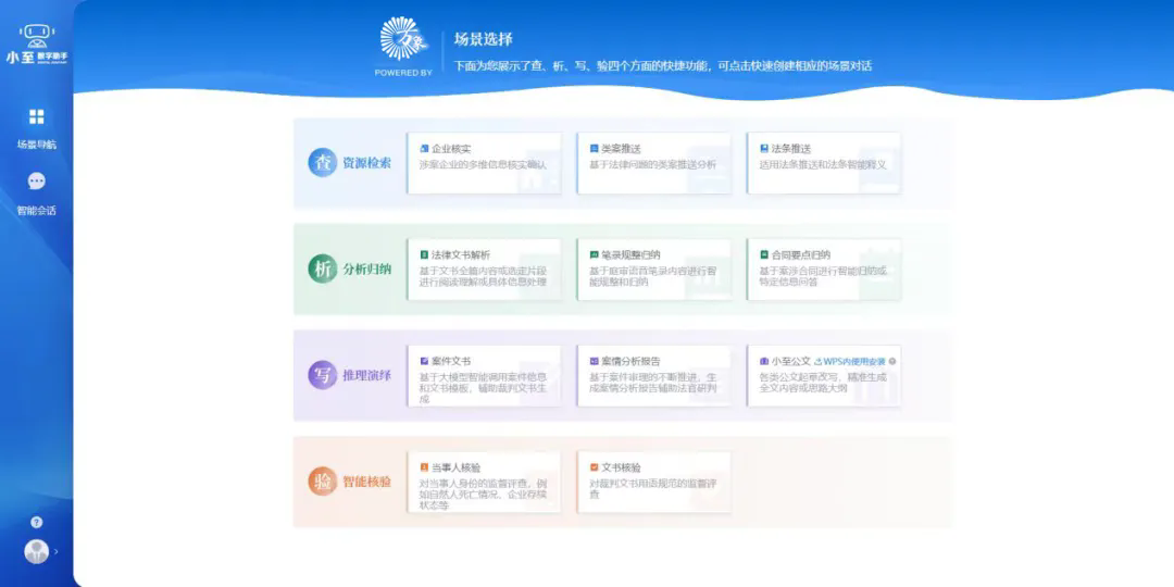 在万象法律大模型能力支撑下,法官数字助理聚焦知识资源检索、阅卷案情分析、文书编写辅助、审判质效监督四大核心场景需求,专项设计研发了“查”、“析”、“写”、“验”四类知识服务能力,并通过法官在办案件背景解析,提供嵌入式知识服务,使得人机交互具备了详细情境、便于机器准确理解语义并把握意图。