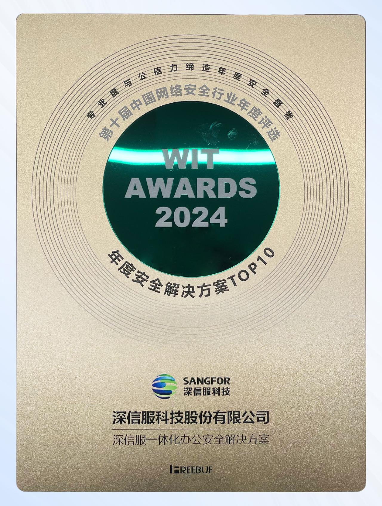 同时,在Freebuf近期举办的第十届WitAwards中国网络安全行业年度评选活动中,深信服一体化办公安全解决方案获得了“年度安全解决方案TOP 10”。
