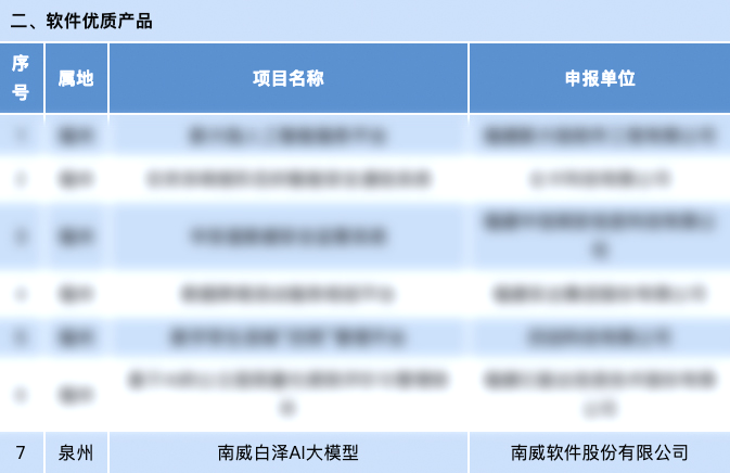近日,福建省工业和信息化厅公布关于51个省级人工智能产业发展项目的通知。根据《福建省人民政府办公厅关于印发福建省促进人工智能产业发展十条措施的通知》(闽政办〔2023〕26号)《福建省工业和信息化厅关于开展2024年省级人工智能产业发展项目申报工作的通知》(闽工信函软件〔2024〕312号),经严格评审,“南威白泽AI大模型” 荣誉入榜,被确定为省级人工智能产业发展项目,获选「软件优质产品」和「“领雁”软件企业」双项荣誉,彰显出南威软件集团的技术实力与创新水平。