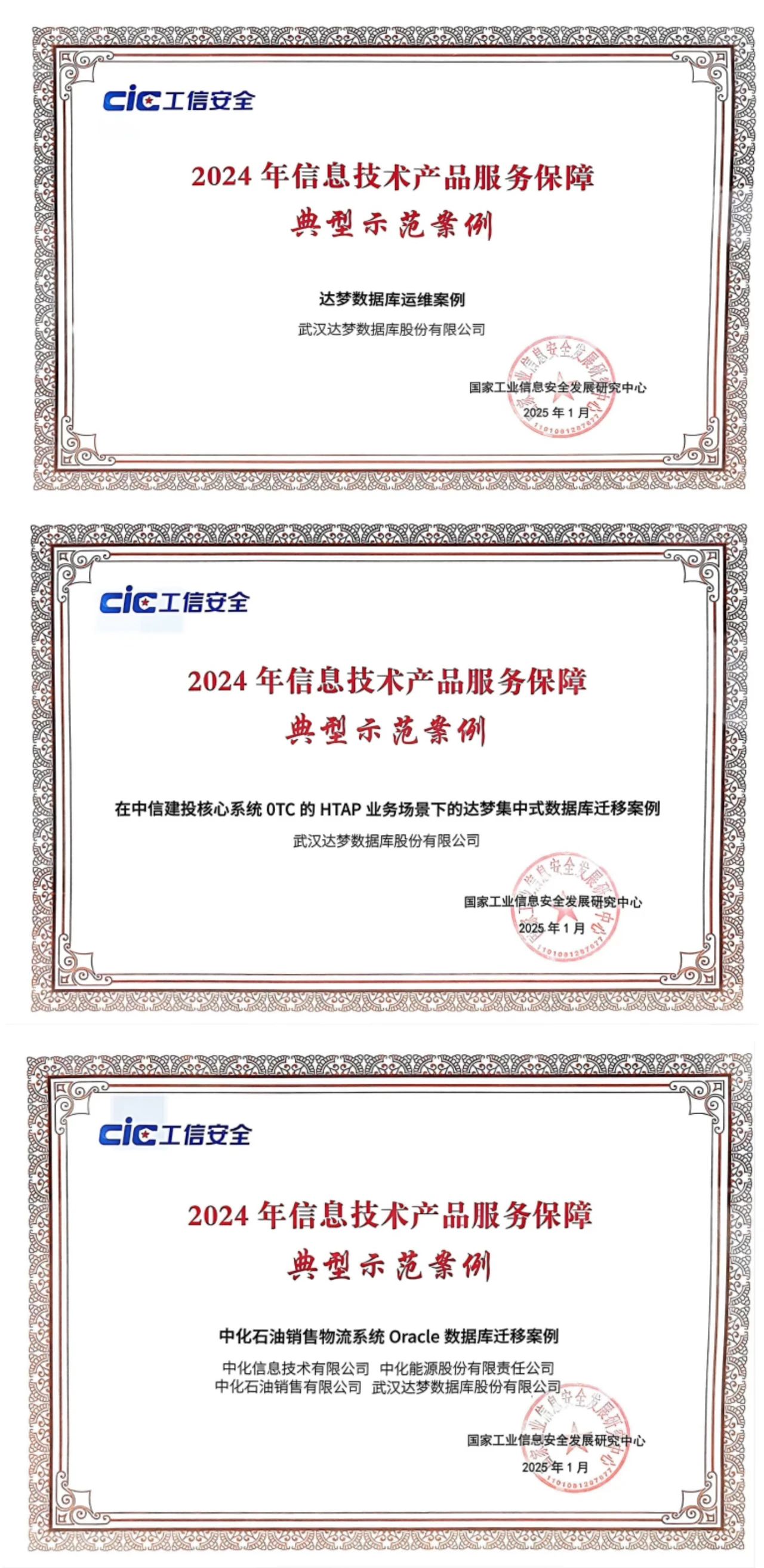 2024年信息技术产品服务保障典型示范案例征集结果公布,达梦数据申报的“达梦数据库运维案例”、“在中信建投核心系统OTC的HTAP业务场景下的达梦集中式数据库迁移案例”、“中化石油销售物流系统Oracle数据库迁移案例”从众多优秀案例中脱颖而出,成功入选。
