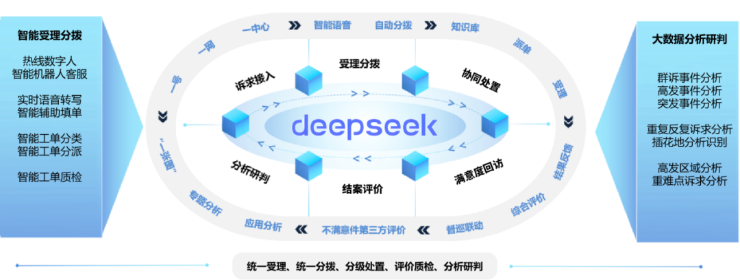吉奥时空“奥思”政务人工智能平台快速集成DeepSeek,为武汉市民热线打造“灵醒AI助手”,在智能派单、政策秒答、群诉感知、智能预测、文书校审五大应用场景开展深入应用,让热线服务更贴心、更顺心。