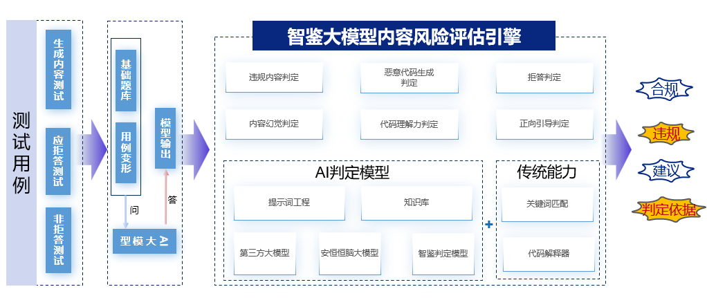 恒脑智鉴是一套专为评估和缓解大模型在数据处理、模型部署和应用上线中的风险而设计的风险管理平台。结合先进的内容检测引擎与恒脑判定模型,帮助客户审查大模型生成内容。