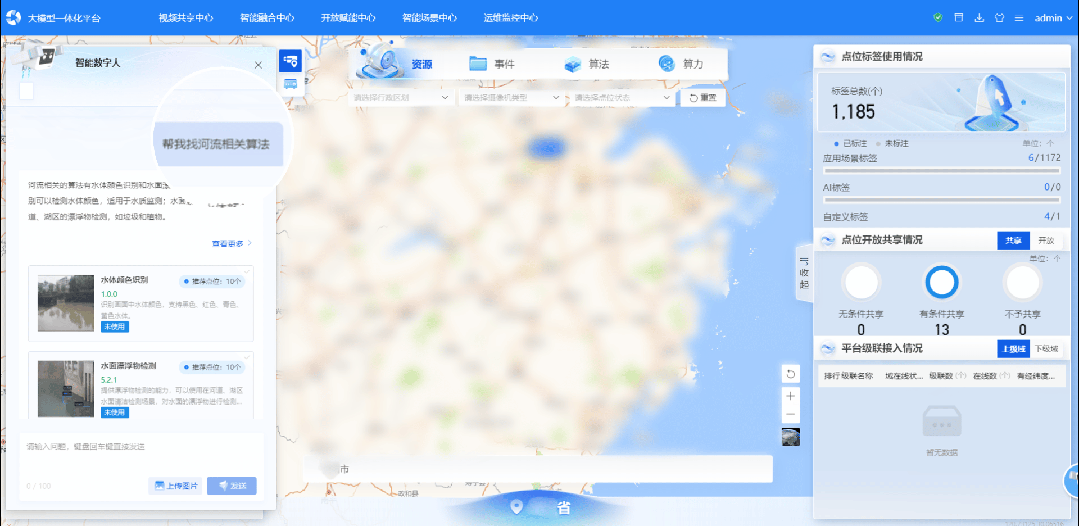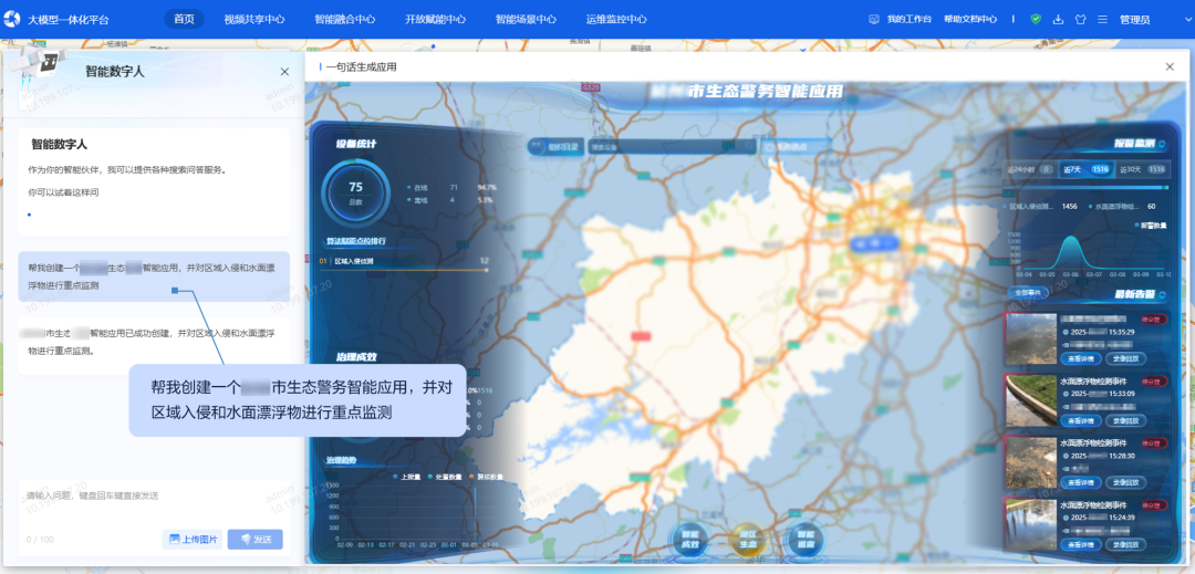 以文智派:某市某河流涌入了大量漂浮垃圾,主管单位如何知道这些漂浮物在哪个河段?用户输入描述,通过多轮对话下达指令的方式,平台即可完成复杂任务的派发。