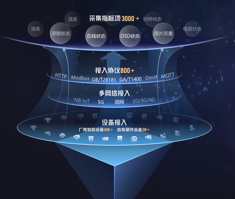 凭借20余年深厚的行业耕耘和技术沉淀,大模型一体化平台构建统一的物联接入底座,支持跨品牌、跨协议、跨平台的多源异构设备,覆盖3万+自有硬件型号,600+第三方品牌物联设备,兼容800+接入协议标准,打破碎片化场景应用边界。