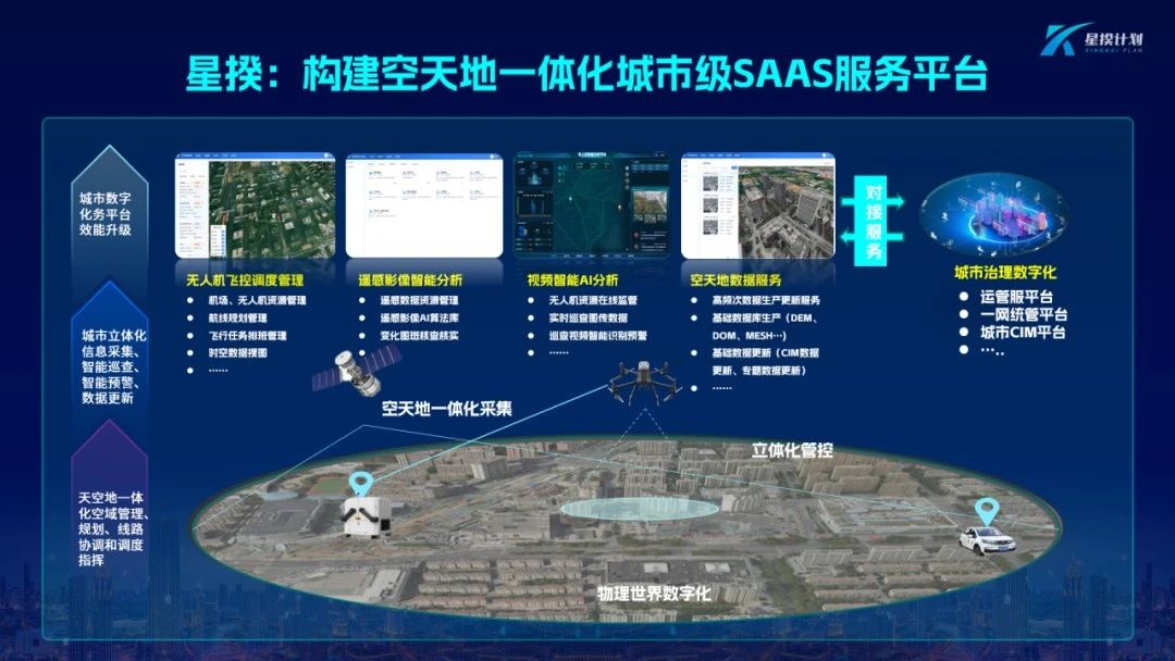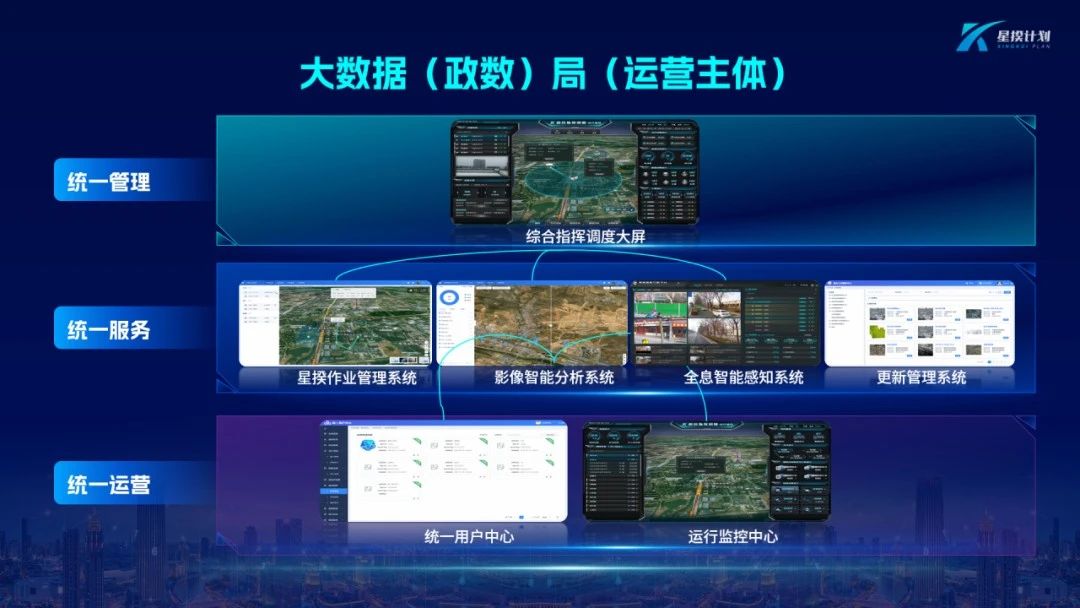 “星揆计划”系统服务架构围绕一网统管、城市生命线、城市运行管理服务等业务场景,“星揆计划”凭借其快速高效的数据发现和采集手段,实现城市无死角、无漏洞的全覆盖巡查与监测新模式。通过对多源时空数据的智能识别形成预警信息,通过系统对接,将城市实时案件推送至各政务处置平台,实现城市运行数据的全感知、全互联、全分析、全响应、全应用。为城市运行一网统管等注入鲜活动力。