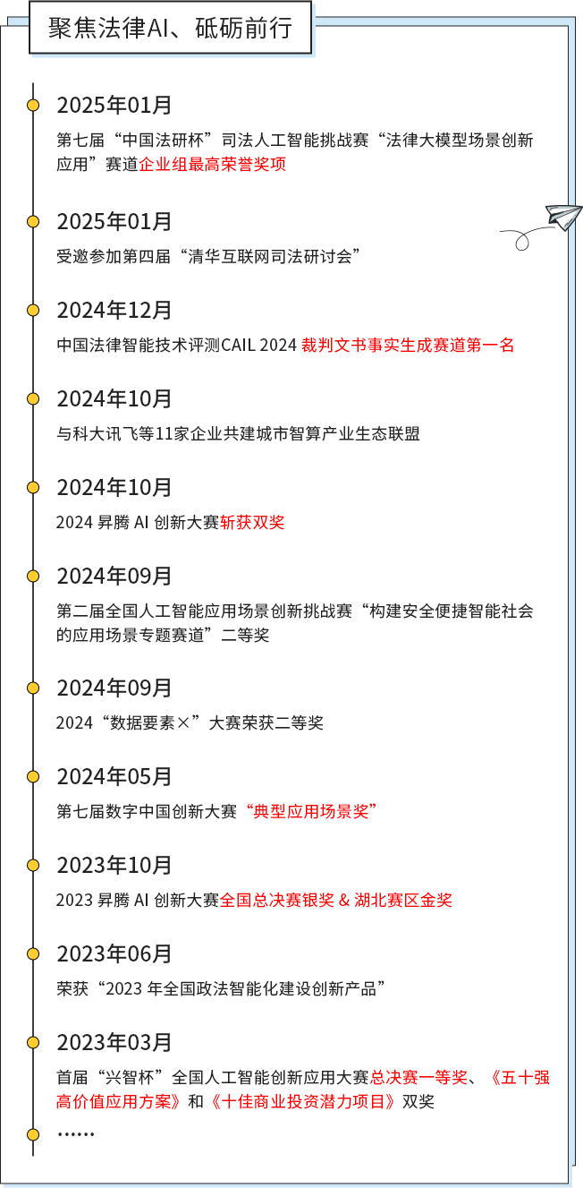 未来,公司还将继续聚焦司法业务场景,大力攻坚法律领域专属大模型业务侧落地,提升前端业务处理效能,以科技之力书写法治新篇!