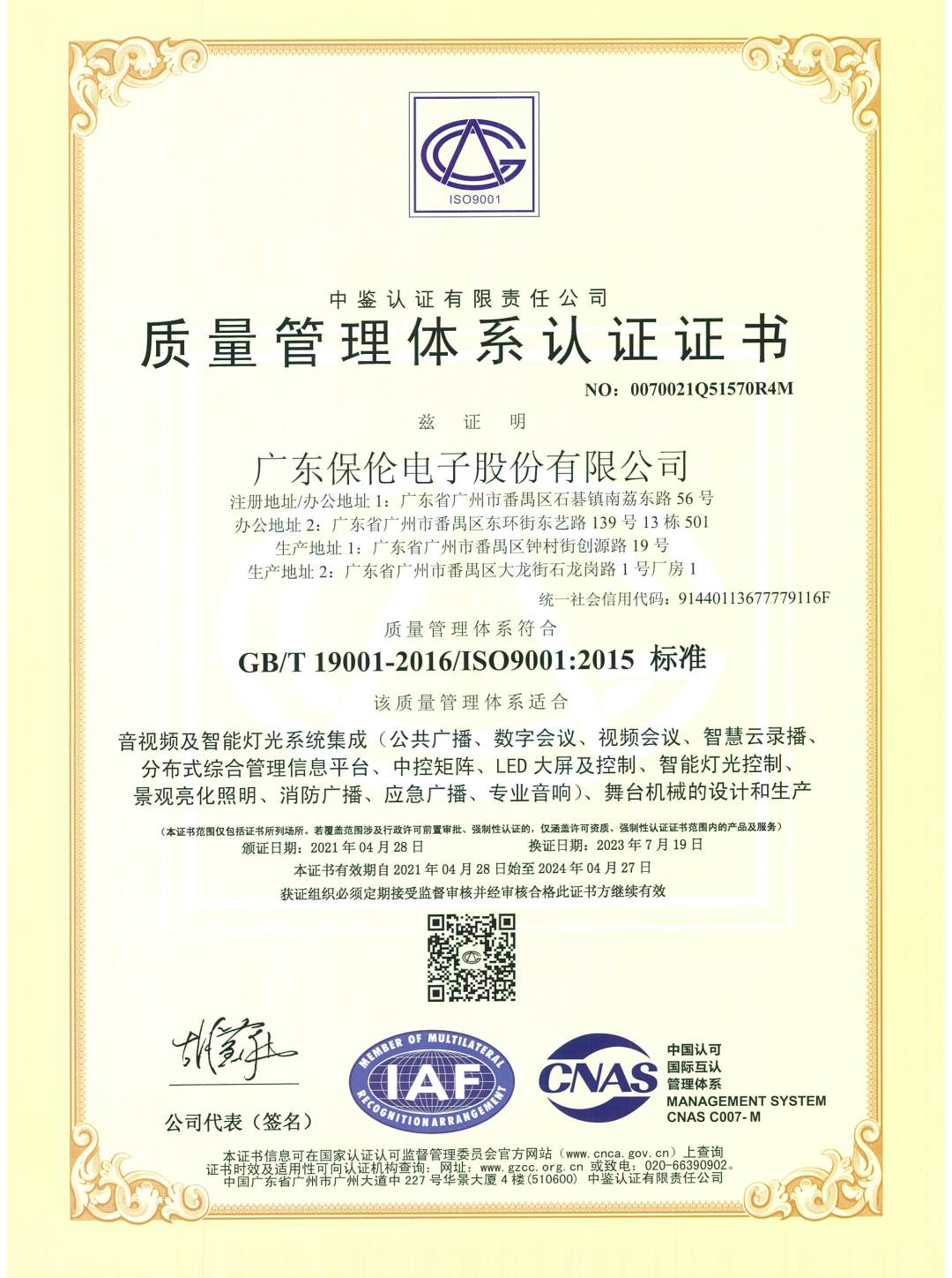 作为中国制造的杰出代表,itc保伦股份始终坚持以消费者需求为导向,注重产品研发与品质提升,致力于为各行业客户提供更高安全、更可靠、更卓越的音视频体验。近年来,itc保伦股份全面吹响高质量发展号角,持续以研发自主品牌为主导,以高标准推进规范化生产建设,做到严守产品质量安全底线,提升安全管理、安全检测技术水平。建立覆盖"研发-生产-服务"全周期的标准化质量管理体系,所有产品均通过ISO9001质量管理体系、ISO14001环境管理体系、ISO20000信息技术服务管理体系、武器装备质量管理体系、信息安全管理体系等多项认证,并拥有国家级CNAS实验室,实现军工级品质管控标准,确保交付到客户手中的每套产品都具有优良的品质和卓越的性能。