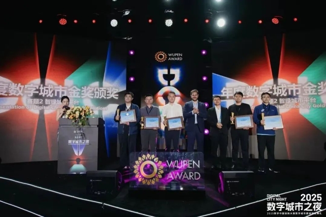 该奖项由鄂州市数据局联合湖北省数产集团等单位共同申报,凭借先进的建设理念、创新的技术构架及显著的实施成效,从全国358个参赛案例中脱颖而出,并在第八届数字中国建设峰会期间举办的“2025数字城市之夜暨数字中国创新大赛·数字城市赛道颁奖典礼”上隆重颁奖。