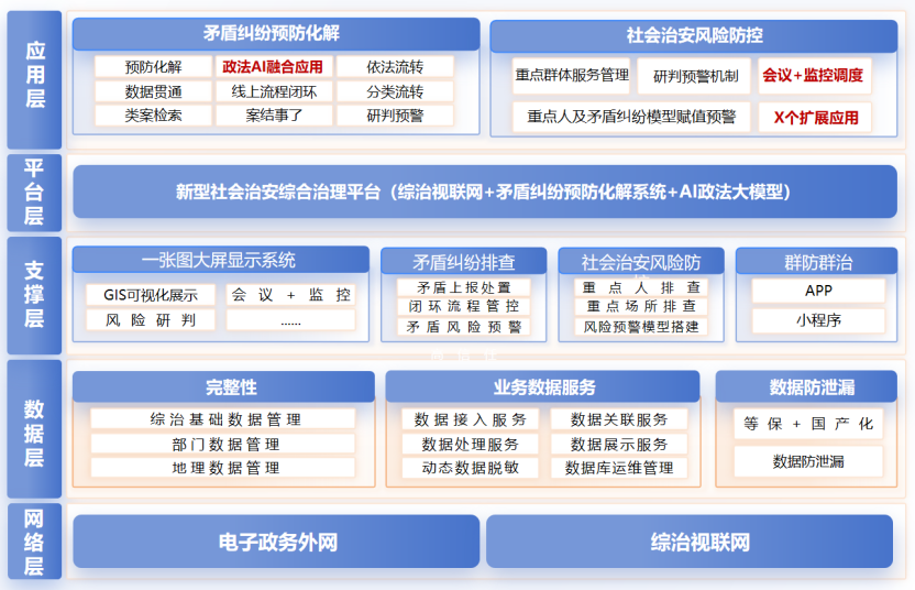 按照政法推进综治中心规范化的部署要求,当前基层治理正加速向“数据驱动、实战导向”转型——通过统一编码、智能分流实现矛盾纠纷全流程规范管理,更需依托技术手段强化风险研判、应急处置等实战能力,为群众诉求解决和基层稳定提供坚实支撑。视联网立足全国27.5万个点位构建的横向协同、纵向贯通网络体系,跨域接入全国算力核心枢纽、城市级数据中心及边缘算力资源,并融合政法AI大模型大模型技术,实现识图成文、方言转换、法律咨询、类案检索、化解文书生成、视频调解及分析研判等全链条智能化服务,为基层矛盾调解提供从信息流转到处置落地的全流程科技支撑,切实为排查化解工作减负增效。