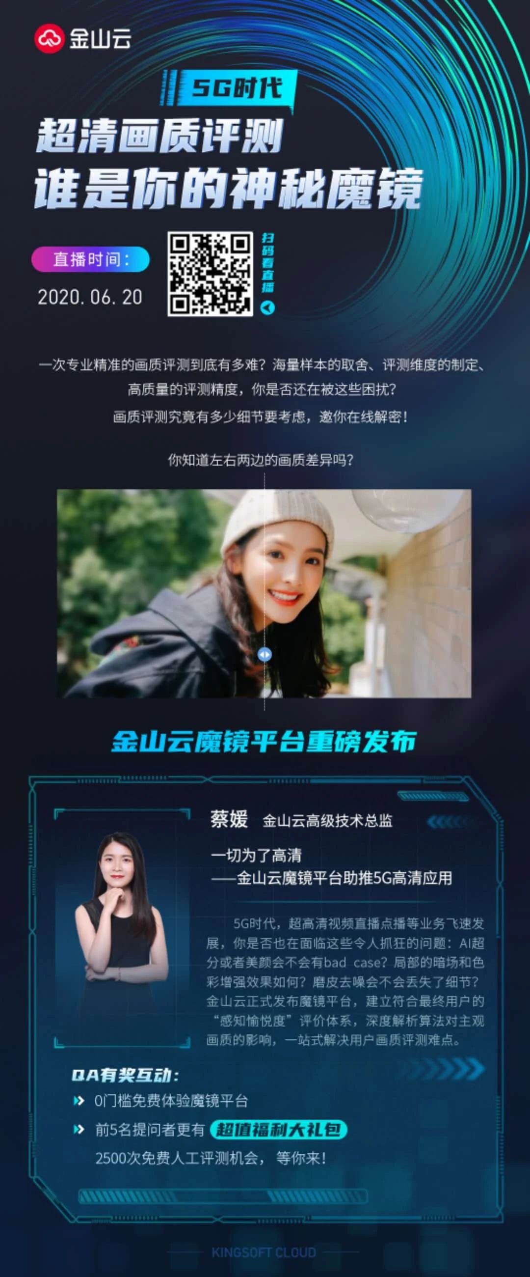 金山云魔镜平台将为主观画质评测带来怎样的变化?用户如何通过金山云魔镜平台高效完成画质评测?6月20日,金山云高级技术总监蔡媛将出席多媒体技术领域的盛会—LiveVideoStackCon2020首届音视频线上峰会,分享「一切为了高清 金山云魔镜平台助推5G高清应用」的主题演讲。届时,蔡媛将重点从如何建立视频主观画质可量化指标方向进行阐述,并对视频筛选、评测维度、评测质量、数据映射等难点进行剖析,为观众揭开金山云魔镜平台的实战秘籍。