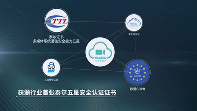对于IT人员最关心的数据安全,亿联会议做的可谓是“滴水不漏”!在安全可靠性上,亿联视讯系统获得了行业首张泰尔5星安全证书,这是目前行业安全领域的最高认证!另外,安全等保三级认证、可信云认证,欧洲GRDP标准检测等都是安全保证的“金字招牌”。