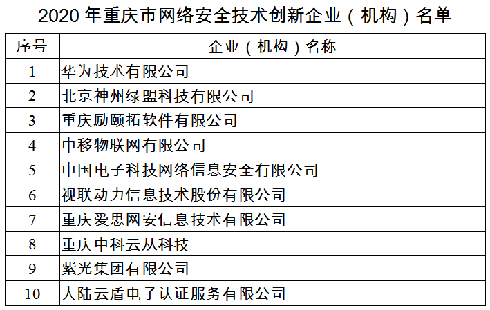 为进一步提升网络安全企业服务质量,鼓励企业加大技术创新与攻关力度,促进重庆市网络安全产业健康发展,重庆市委网信办会同安全中心重庆分中心、重庆市互联网界联合会自2020年8月起在全市范围内征集推荐2020年重庆市网络安全优质服务企业和网络安全技术创新企业,并对64家初审合格企业进行网上推荐评选,视联动力最终入选《2020年重庆市网络安全技术创新企业》名单。重视技术创新、拥有稳定的专业团队、创新技术(产品)得到业界认可、市场化应用广泛等为该名单的评选标准。