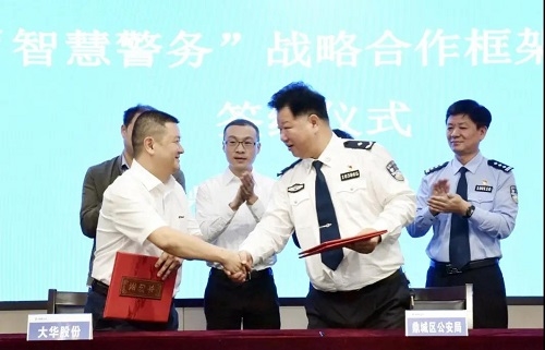 近日,湖南省常德市鼎城区公安局(以下简称鼎城公安)与大华股份签署战略合作协议,双方携手打造先进的智慧警务示范样板,为平安鼎城、智慧鼎城做出贡献。鼎城区委常委、区人民政府常务副区长李卫民,区委常委、政法委书记瞿政前,大华股份副总裁江小来等受邀出席签约仪式;区人民政府副区长、公安局长洪振坤与大华股份国内营销中心湖南区域总经理黄河代表双方正式签署合作协议。