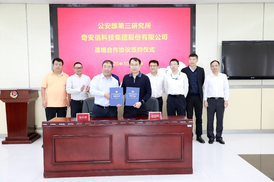 10月19日上午,奇安信集团与公安部第三研究所(以下简称“三所”)在上海举行战略合作签约,公安部三所所长黄胜华、奇安信集团董事长齐向东等相关领导出席了本次签约仪式。